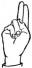 На ћирилици написано ЕЛЕНА БИБЕР састоји се из 10 слова [?]. Исписано ћириличном једноручном азбуком за глувонеме: